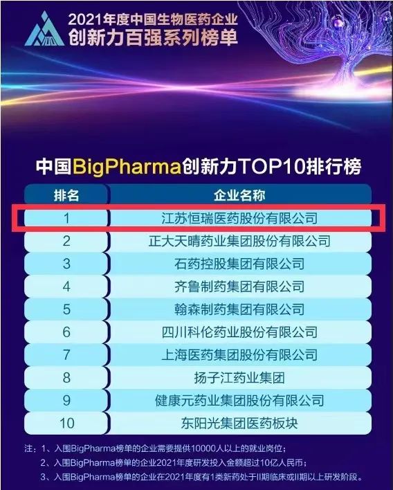 蝉联榜首!开云体育医药再次登顶“中国BigPharma企业创新力TOP10排行榜”