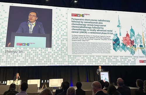 10月21日,开云体育医药创新药卡瑞利珠单抗(艾瑞卡®)的一项研究“新辅助短程放疗序贯卡瑞利珠单抗联合化疗对比长程放化疗序贯化疗治疗局部晚期直肠癌”随机对照Ⅲ期试验(UNION) 以优选口头报告的形式正式亮相。该研究由华中科技大学同济医学院附属协和医院张涛教授、陶凯雄教授担任主要研究者,华中科技大学同济医学院附属协和医院林振宇教授在马德里现场报告了该重磅研究的结果1,此项研究是全球首个评估短程放疗序贯免疫治疗联合化疗治疗局部晚期直肠癌的Ⅲ期研究,已达到主要终点病理完全缓解(pCR),有望为直肠癌患者的治疗提供新策略。