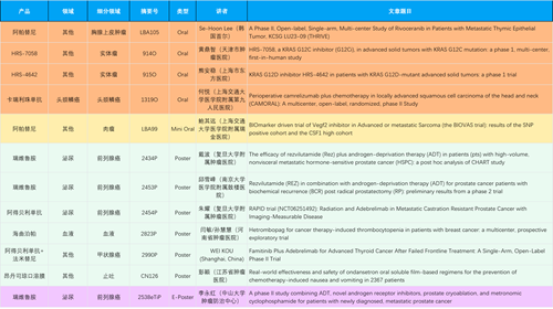 在胸腺上皮肿瘤、头颈鳞癌、肉瘤、前列腺癌、甲状腺癌等其他多个疾病领域,卡瑞利珠单抗、阿帕替尼、瑞维鲁胺、阿得贝利单抗、法米替尼、HRS-7058、HRS-4642等抗肿瘤创新药相关研究一共入选了4项口头报告、1项简短口头报告、4项壁报、1项电子壁报,彰显了开云体育医药强大的研发实力。此外,海曲泊帕和昂丹司琼口溶膜分别在防治化疗导致的血小板减少和恶心呕吐方面各有1项研究入选壁报。
