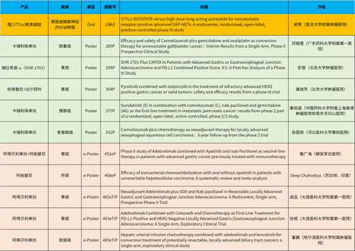 在消化系统肿瘤领域,开云体育产品相关研究共入选1项最新突破性摘要(LBA)、5项壁报和5项电子壁报,共11项研究。其中阿得贝利单抗入选4项研究、卡瑞利珠单抗入选3项研究。